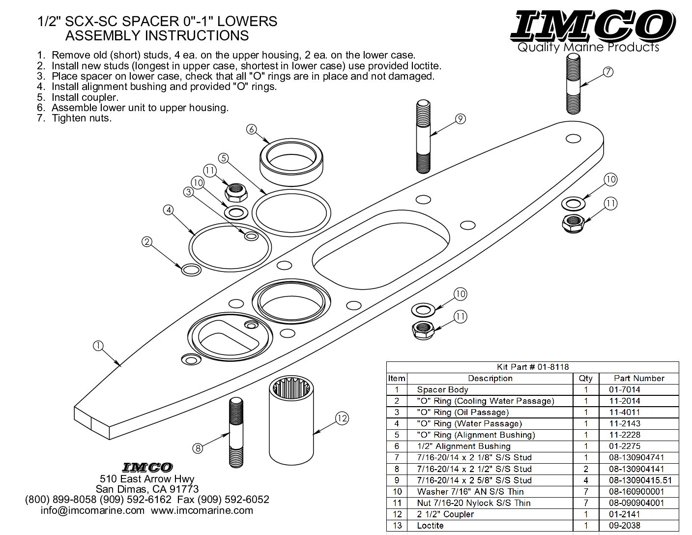 1/2″ SCX-SC Spacer for 0″-1″ SC Lower Kit Part # 01-8118 Installation Instructions: Click Here for PDF File |